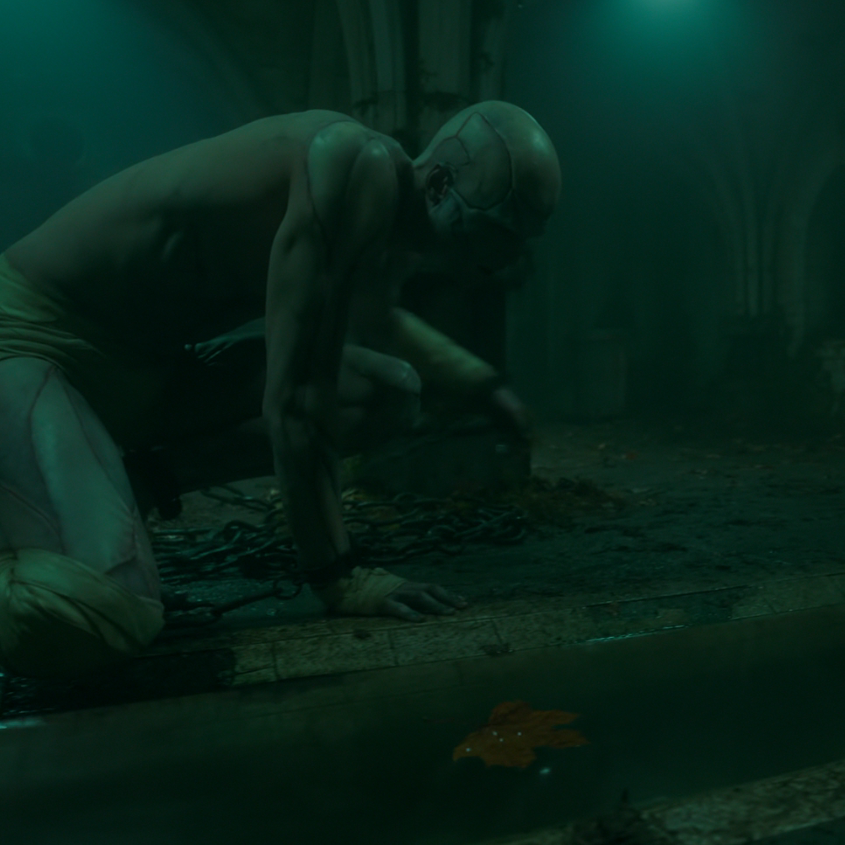 Water is shown just as prominently as fire is in the film. Similar to the first shot we see of Victor as a child where he is sitting in front of a fire, in the first shot we see of William as a child there is a river behind him. Fire and water are two powerful, opposing forces that show up repeatedly in the narrative. The tower itself says “Aqua est Vita” which means “water is life.” The Creature is brought to life in a thunderstorm and he is also fascinated by water and plays in it to pass the time while chained in the basement. He is also essentially reborn again when Victor sets the entire tower on fire in an effort to destroy him and he escapes through a tunnel, a symbol for passing through the birth canal, into the water (think of water breaking in childbirth). Considering the religious imagery that is also heavily shown in the film, you could consider this a baptism of sorts; a death of his old life under Victor, a rebirth and the start of a new life in freedom, learning who and what he is away from his creator.